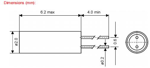 12.80115|32.768KHz|12.5pF|格耶小型圓柱晶體尺寸圖