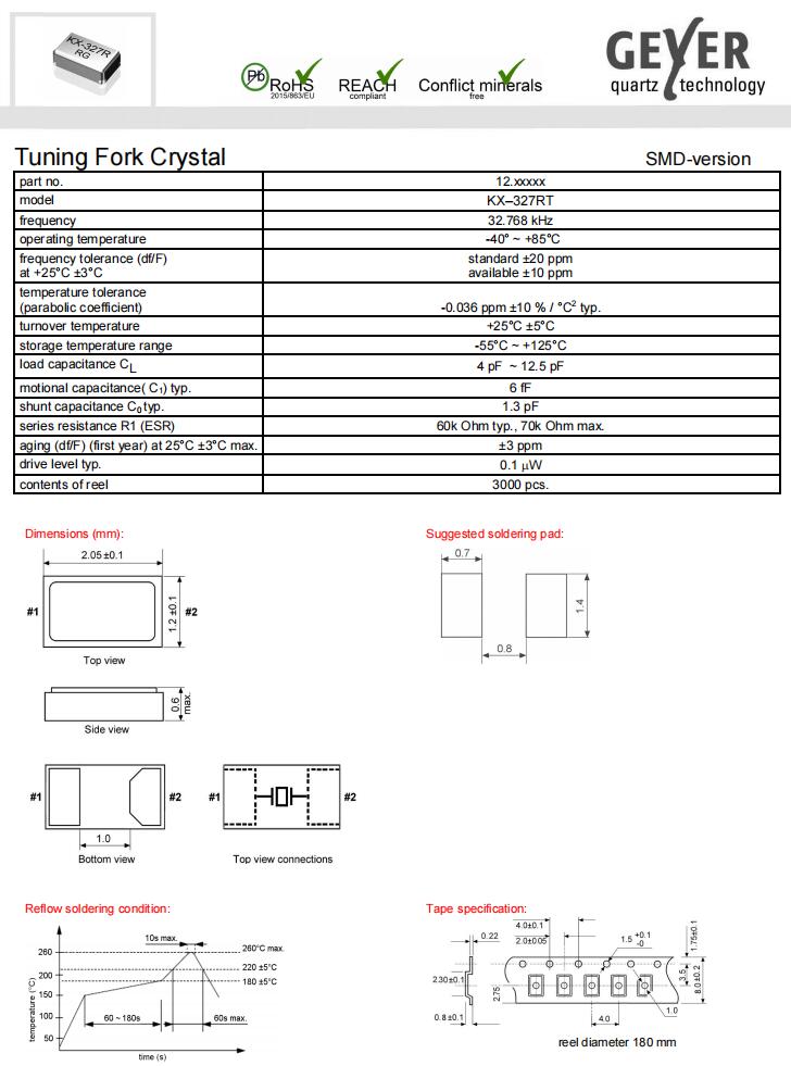 12.87160|32.768KHz|12.5pF|格耶石英晶振規(guī)格表