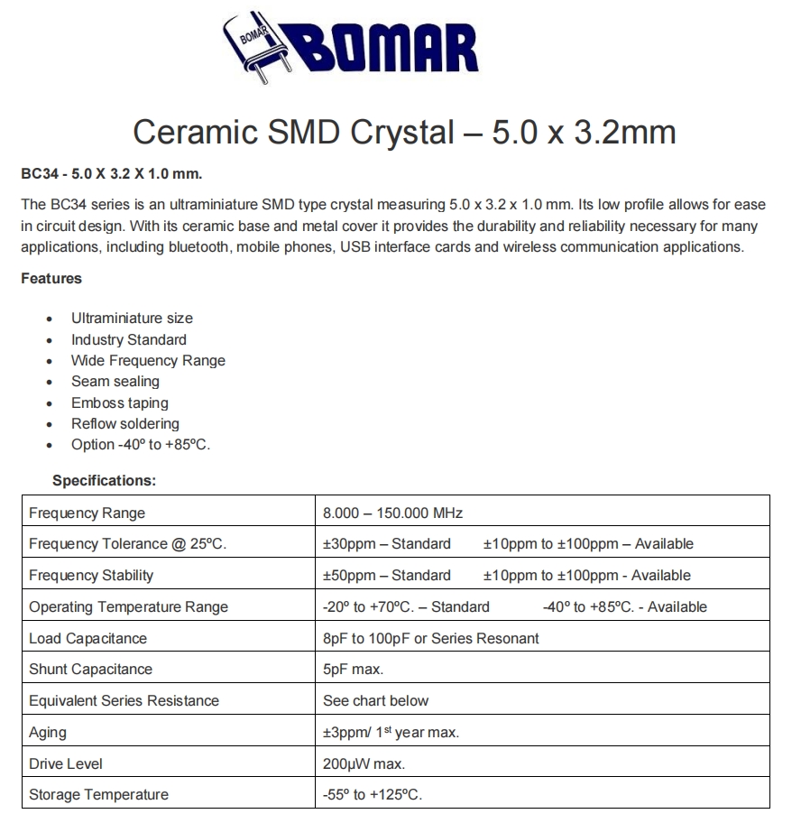 Bomar晶振,BC34EFI120-24.000000,6G模塊晶振規格表