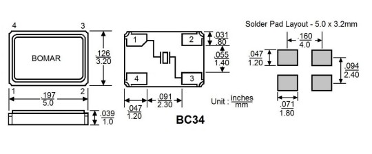 Bomar晶振,BC34EFI120-24.000000,6G模塊晶振尺寸圖
