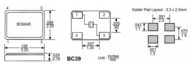 Bomar晶振,BC39EFD120-18.000000,6GWIFI應用晶振尺寸圖