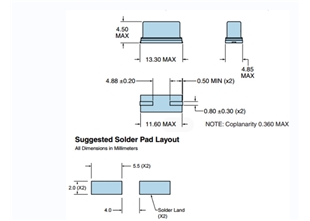 | 尺寸 | 2-Pin HC-49/UP SMD |