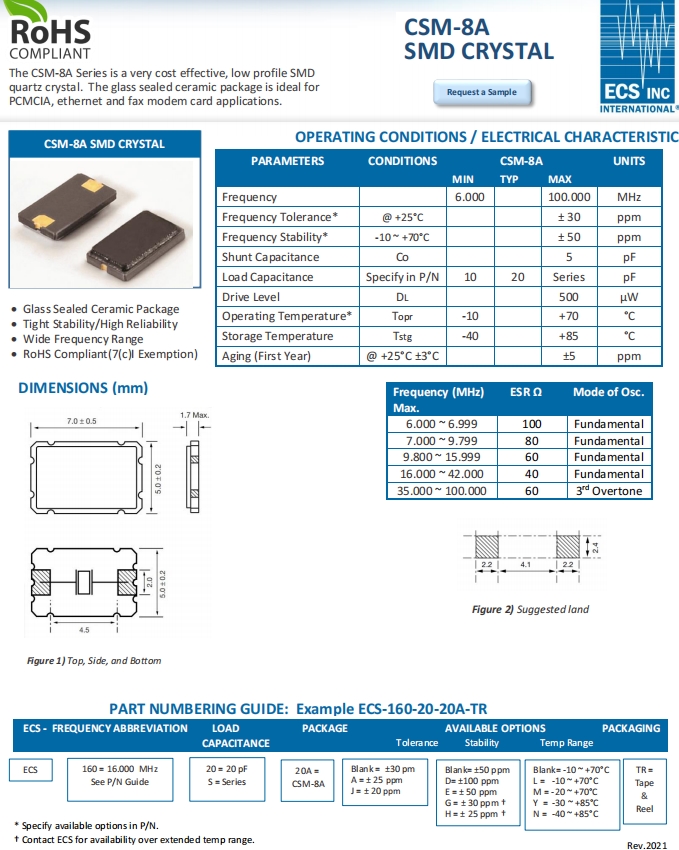 | ECS-480-20-20A-TR | ECS晶振 | CSM-8 | 48MHz | -10°C ~ 70°C |
