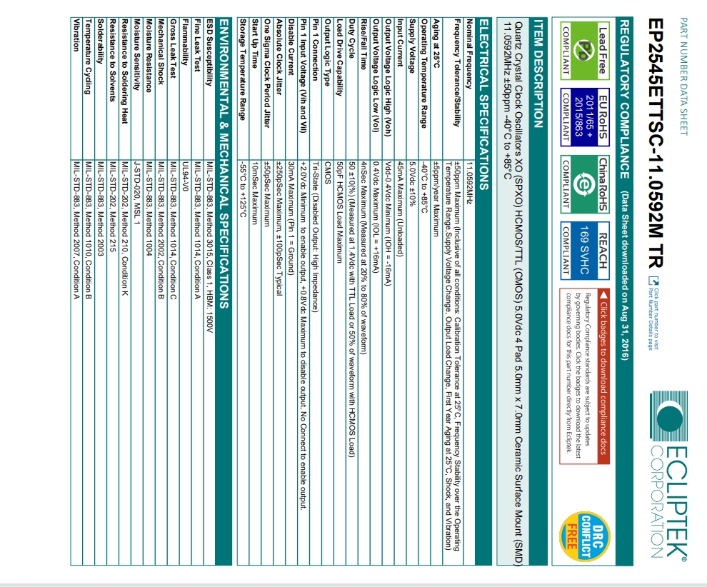 EP2545ETTSC-11.0592M TR|XO晶振|ECLIPTEK晶振