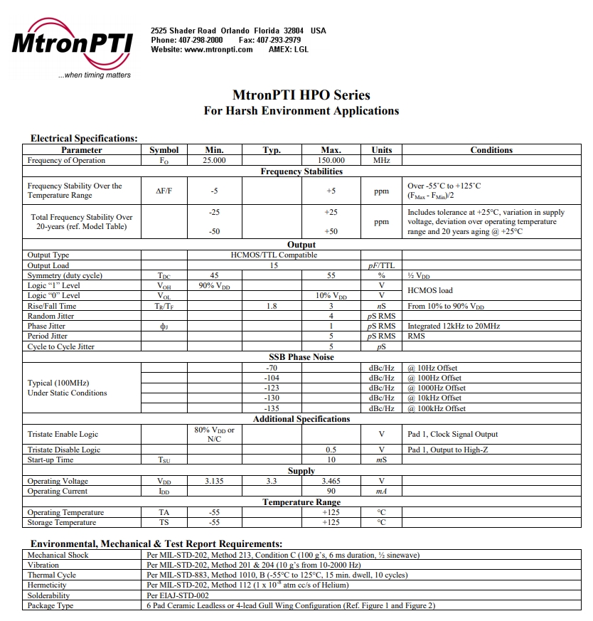 | HPO-321 25.000000 | HPO | ±5 ppm | 25 | 5.0 x 7.0 mm | -55°C to +125°C | 3.3 |