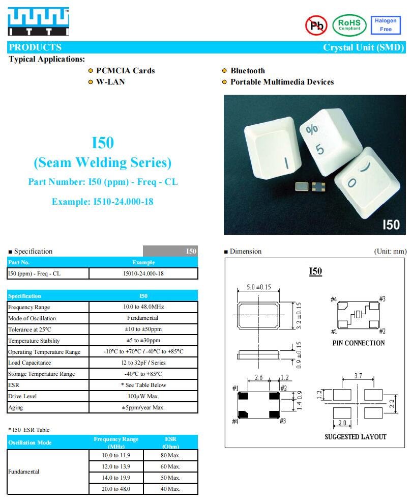 ITTI石英晶振,I5010-20.000-16,6G移動無線電晶振規(guī)格表
