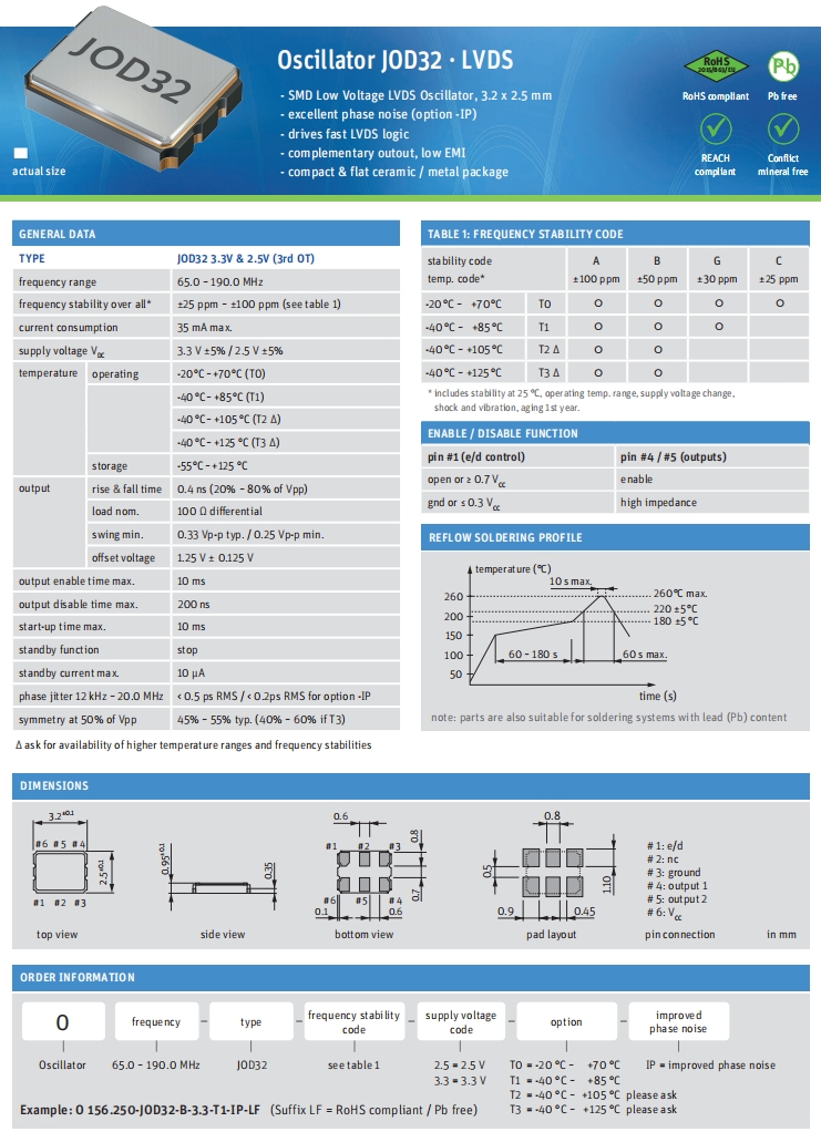 JAUCH晶振,O150-JOD32-G-3.3-T1-LF,6G存儲器晶振規格表