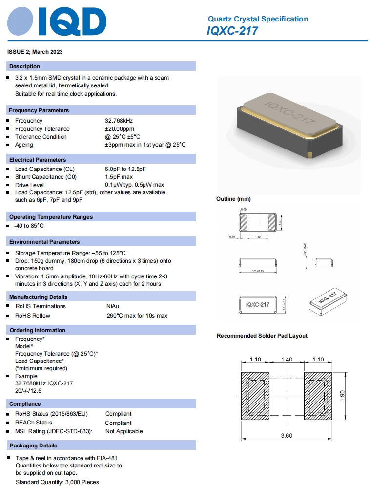 LFXTAL084885|IQD Crystal規格表