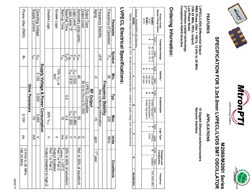 MTRONPTI晶振規格 單位 M2060晶振 石英晶振基本條件