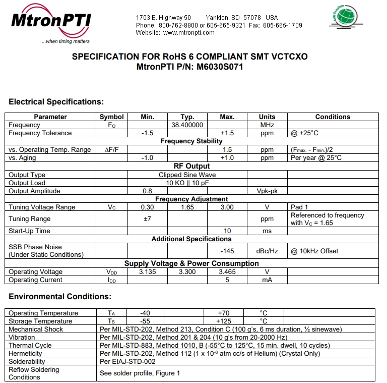 | M6030S071 38.400000 | M630x | ±1.5 ppm | 38.4 | 5.0 x 7.0 mm | -40°C - +70°C | 3.3 |