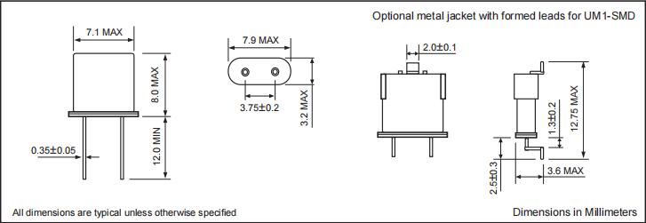 UM1-125M000-3B30D-20|125MHz|20pF|Fortiming晶振尺寸圖