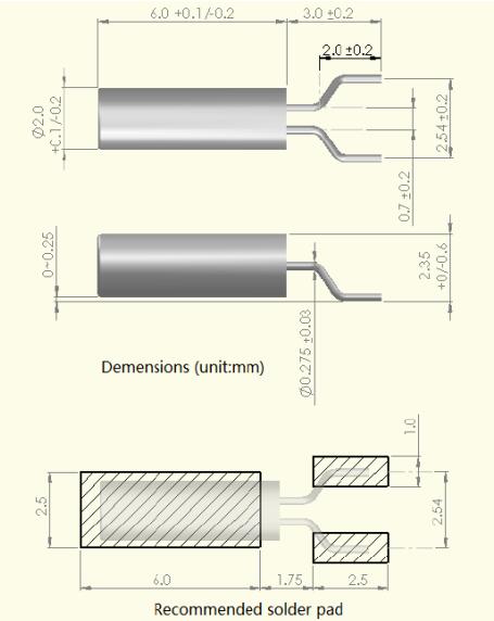 • 晶振尺寸:2*6mm
