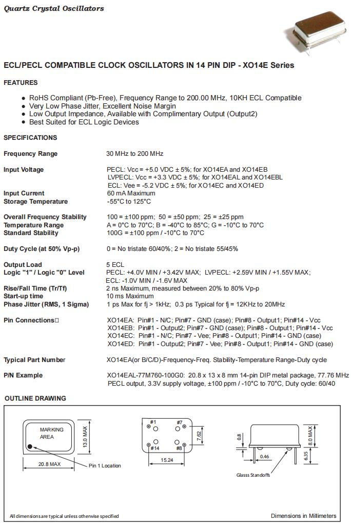 -符合RoHS標準(無鉛),頻率范圍至200.00 MHz, 10KH ECL兼容