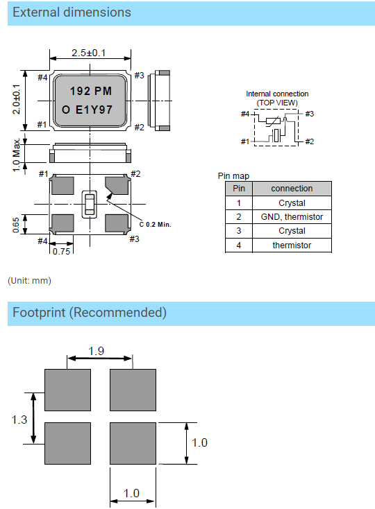 - 晶振尺寸:2.5*2.0*1.0mm