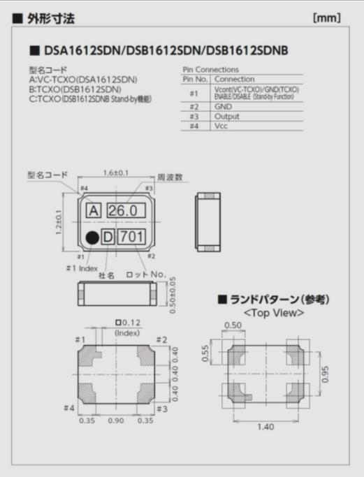 KDS晶振,DSB1612SDN晶振,16.8MHz晶振,頻率范圍:16.3676MHz/16.367667MHz/16.368MHz/16.369MHz/16.8MHz/26MHz/33.6MHz,厚度1.6 × 1.2 × 0.55mm,應用于:無線通信設備.