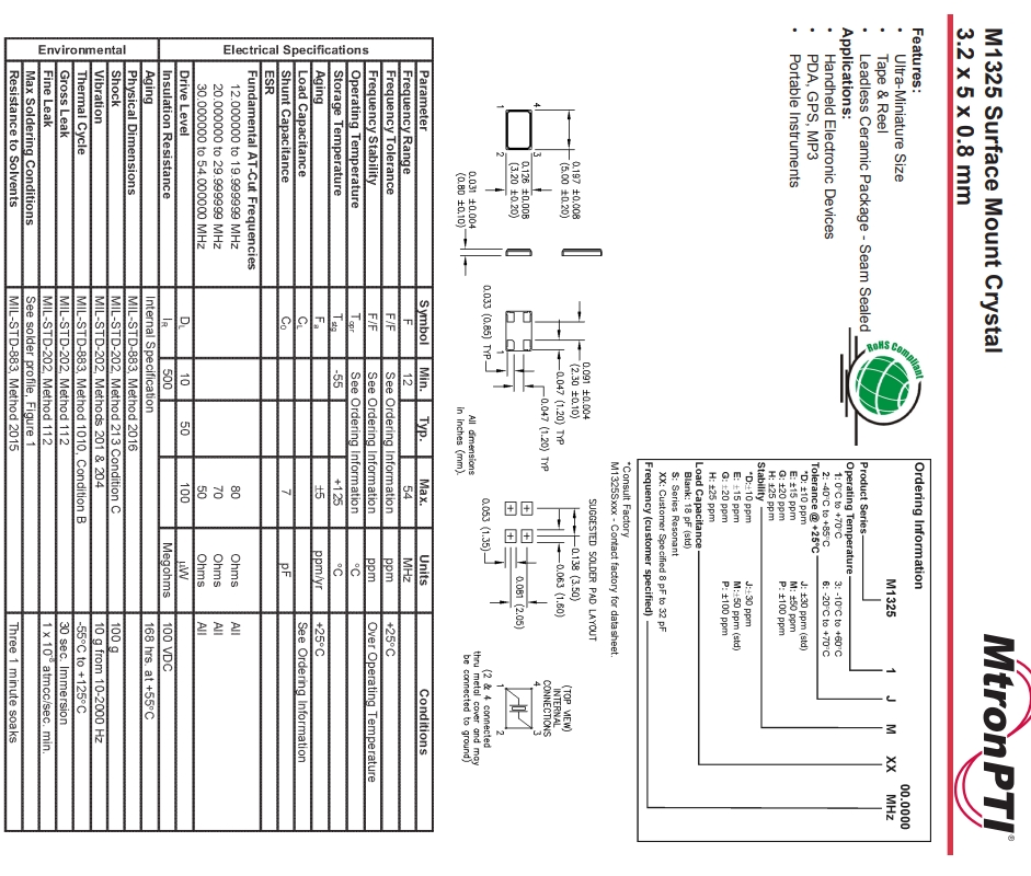 | MTRONPTI晶振規格 | 單位 | M1325晶振 | 石英晶振基本條件 |