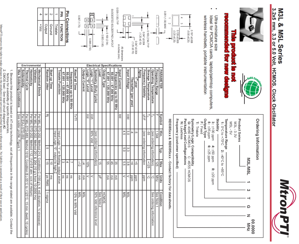 | M3L14TCN 62.500000 | M3L and M5L | ±50 ppm | 62.5 | 3.2 X 5.0 mm | 0°C to +70°C | 3.3 |