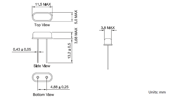 • 晶振尺寸:11.5*5.0mm詳情請瀏覽PDF
