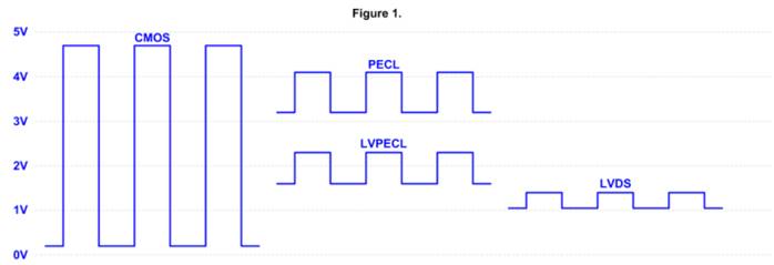 A.輸出.絕大多數系統需要晶體振蕩器輸出,這是PECL兼容,CMOS兼容或遵循一些其他標準接口.這些輸出中的任何一個都可以由跟隨晶體振蕩器級的電路簡單地產生.一些常見的邏輯電平如圖1所示..jpg)