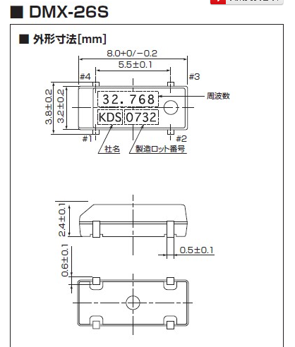 以上是DMX-26S晶振的尺寸圖,體積僅有8.0*3.8mm