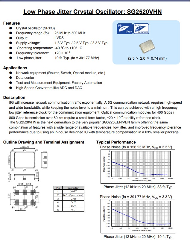 SG2520VHN差分晶振X1G005941001015適用于5G通信網絡設備,X1G005941000415,有源晶振