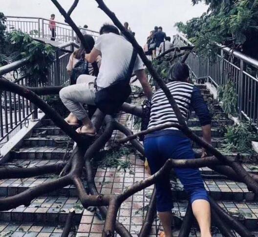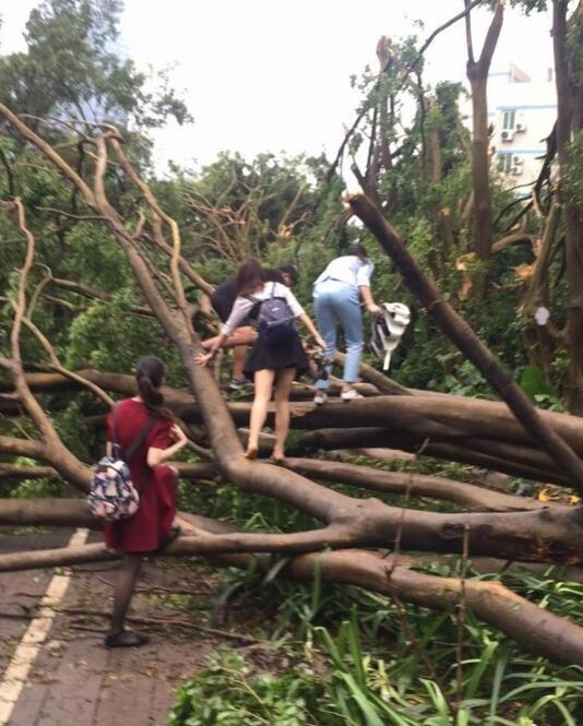 臺風(fēng)過后的晚上都在不停的清理道路,晚上接到通知的上班族們心都涼了半截.一大早起來上班,天吶,就好像是進(jìn)入了原始森林,到處都是樹木,還是那種被吹斷了的.人行道,公交站臺,道路路口,天橋路口全都堵滿了密密麻麻的樹支.這讓上班族們到處找空洞往里頭鉆.今天早上來上班的時候,有個同事居然還問我公司在哪,找不到公司的入口了.(當(dāng)時我忍住了沒笑出聲,直接跟同事說在那堆樹支里找個空洞鉆過去就能看到了)