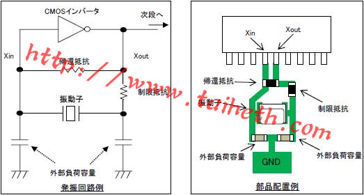 另外,當用接地圖案圍繞振蕩電路圖案作為EMI的對策時,如果振蕩電路圖案和接地圖案彼此非常接近,剛寄生電容將增加并且因此負電阻將減小,所以應當小心.