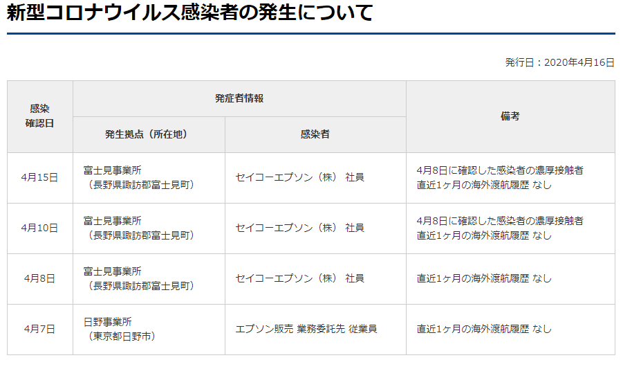 このたび、「緊急事態宣言」が全國に拡大されたことにより、従業員の安全を第一として、従來予定していたエプソングループの休日カレンダーを変更し、4月25日から5月6日までの稼働日4日を休日とすることで、地域社會の皆さまとの接觸を最大限削減することとしました。