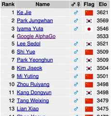 在這個月的9號下午,“阿爾法圍棋”(AlphaGo)機器人與韓國頂尖圍棋高手李世石開始棋戰,在比賽前阿爾法圍棋猜錯棋,李世石選擇黑棋并率先展開布局,黑棋布局走出新型,阿爾法沒反應過來對應不佳出現失誤,李世石抓住其不擅長應對新型的弱點展開了攻勢。但阿爾法之后的下法就變得更強硬了,雙方展開接觸戰,下法招招都是最佳應對。第一戰下來輸給了機器。而后的四天內就已經定下了結局。AlphaGo對戰人類頂級棋手李世石,并以4:1的大分取勝。賽后AlphaGo被韓國棋院授予榮譽職業九段證書,并憑借去年10月5:0勝歐洲冠軍樊麾,以及這次人機大戰前三局3:0大勝李世石的成績,以3533分排名第四,而李世石以3521分位居第五。現排名首位的是中國棋手柯潔,積分為3621分,韓國棋手樸廷桓以3569分排名第二,日本井山裕太以3546分位居第三,在3月15日時,AlphaGo的積分提到3586分,位居排名第二,位居柯潔之下。