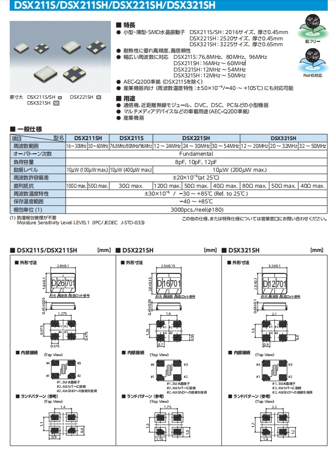 符合AEC-Q200標準(DSX211S除外)