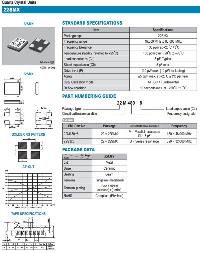 SMI|22SMX 42M|日本進口晶振|6G通訊設(shè)備晶振