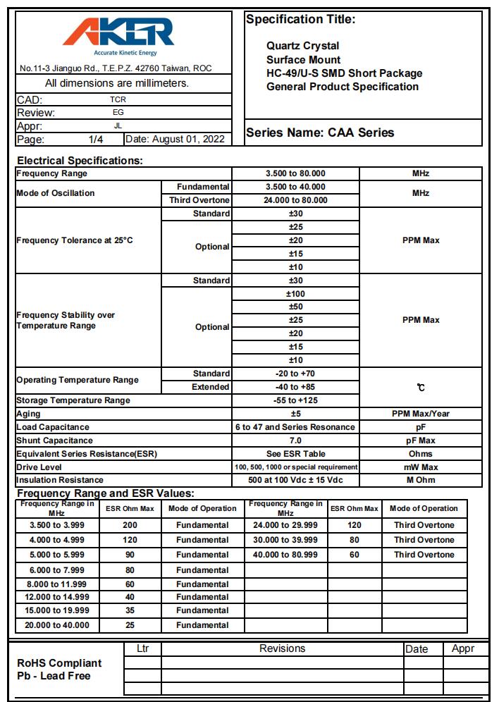 CAA-11.0592.000-12-1020-X-R|11.0592MHz|12pF規格表