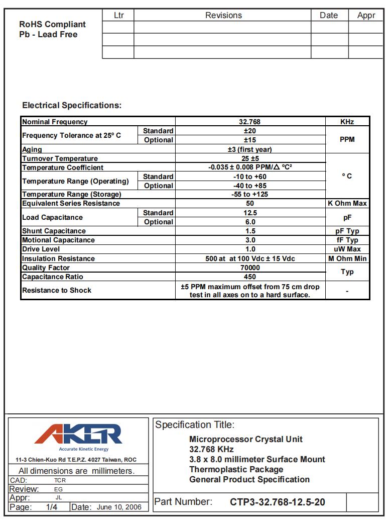 CTP3-32.768-12.5-20-X|32.768KHz|12.5pF|AKER臺灣品牌特點: