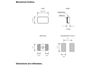 • 晶振尺寸:2.0*1.2*0.6mm
