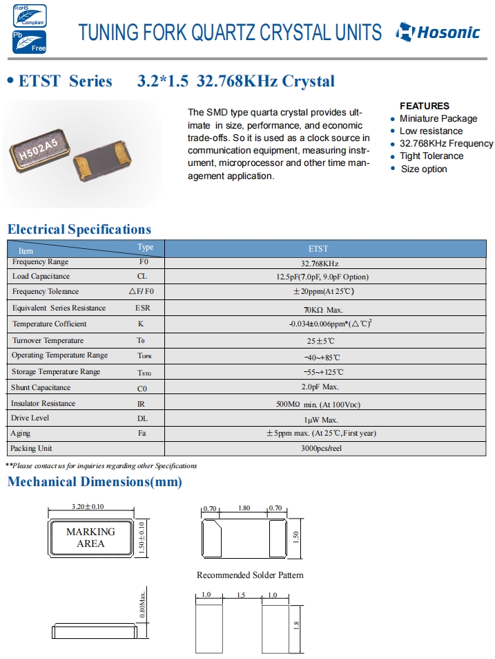 | E3SB34.0000F18E22 | Hosonic晶振 | E3SB | 34 MHz | 18 pF | ±20 ppm | ±20 ppm |