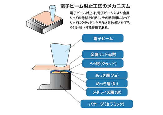 電子束照射被精細地收斂,所以能夠高精度地控制銅焊材料的熔點范圍。因此,能夠減少比縫焊的密封部分的寬度被一個共同的密封方法是一個晶體振蕩器,這大大有助于產(chǎn)品的小型化。