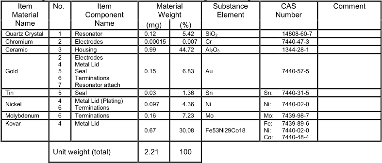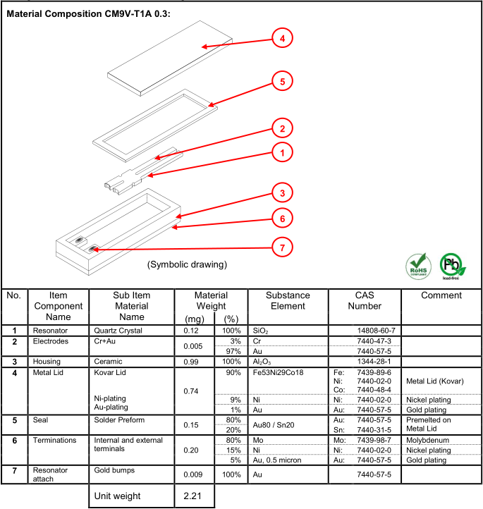CM9V-T1A_0.3晶振材料成分聲明和環(huán)境信息