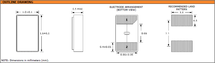 | 激勵(lì)功率 | DL | 0.5μW Max. | 推薦:1μW ~ 100μW |