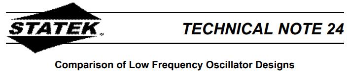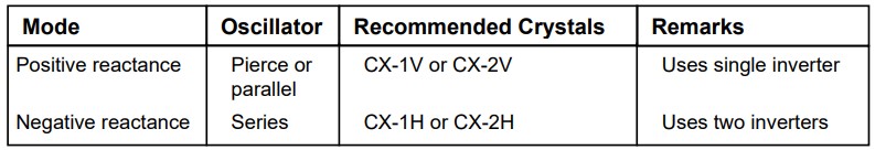 Crystal-controlled oscillators can be divided into two basic groups: positive reactance or negative reactance. The positive reactance mode is commonly called a “parallel resonant” or “antiresonant” oscillator. A pierce oscillator is one commonly-known positive reactance oscillator. The negative reactance mode is usually referred to as a series oscillator. Statek crystals are designed and tuned for a specific mode of operation (Table 1).