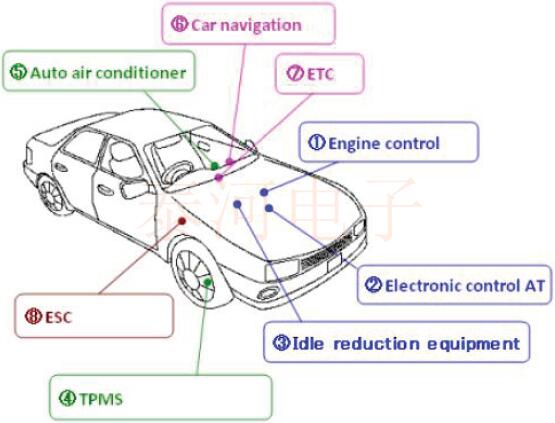 在某些情況下,我們的產(chǎn)品通過用作應(yīng)用程序(客戶產(chǎn)品)間接有助于減少CO2排放(抑制).下圖所示的產(chǎn)品(晶體控制振蕩器,石英晶體振蕩器等)用于汽車電子產(chǎn)品.我們將介紹一個(gè)示例,該系統(tǒng)會(huì)對CO2排放量的減少(抑制)產(chǎn)生影響.