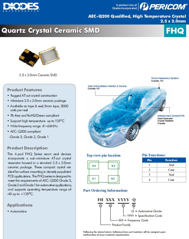 Diodes環保晶振,FHQ高性能晶振,FH1220003Z車載晶振,FH3840024Z耐高溫晶振